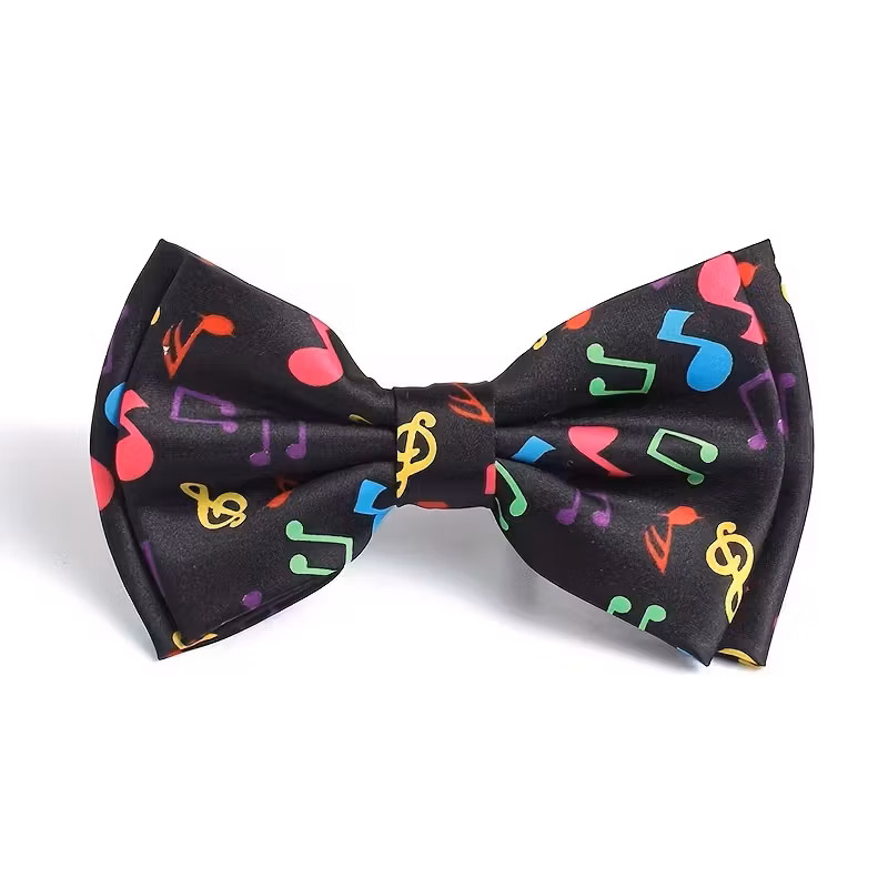 Den här svarta flugan med färgstarka musiknoter är ett tydligt statement för dig som vill sticka ut. Den mörka basen ger ett snyggt och stilrent intryck medan de färgglada noterna tillför energi och lekfullhet. Perfekt till fest, scen, temakvällar eller när du vill visa din musikpersonlighet. Färdigknuten modell som är enkel att bära och alltid sitter rätt.