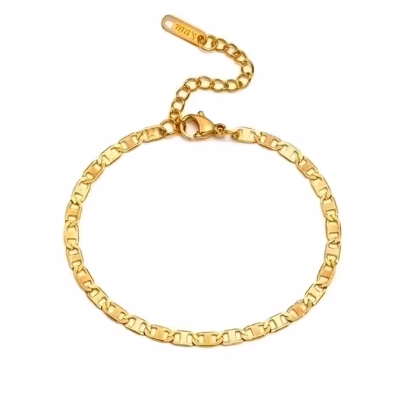 Ett stilrent och klassiskt armband som passar perfekt för både vardag och fest. Den diskreta länkkedjan ger ett tidlöst uttryck, medan den gyllene tonen tillför en känsla av lyx. Ett elegant val för dig som vill bära ett smycke som andas enkelhet och kvalitet.