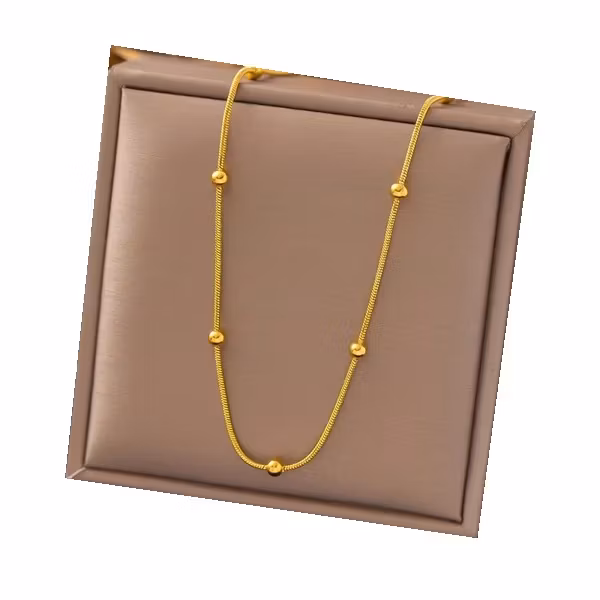 Elegant, enkelt och tidlöst – detta guldhalsband är en självklar favorit i varje smyckeskrin. De små metallpärlorna ger ett subtilt men effektfullt uttryck, perfekt både till vardags och fest. Den smidiga ormkedjan faller vackert längs halsen och ger ett exklusivt intryck. En stilren detalj som lyfter varje outfit med mjuk gyllene glans.