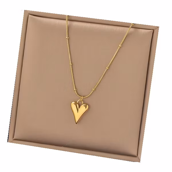 Ett elegant halsband med ett mjukt, droppformat hjärta som fångar både ljuset och blicken. Kedjan är stilrent designad med små ståldetaljer som ger extra struktur och karaktär. Ett perfekt smycke att bära nära hjärtat – både för vardag och fest. Passar lika fint till en enkel t-shirt som till en klänning.