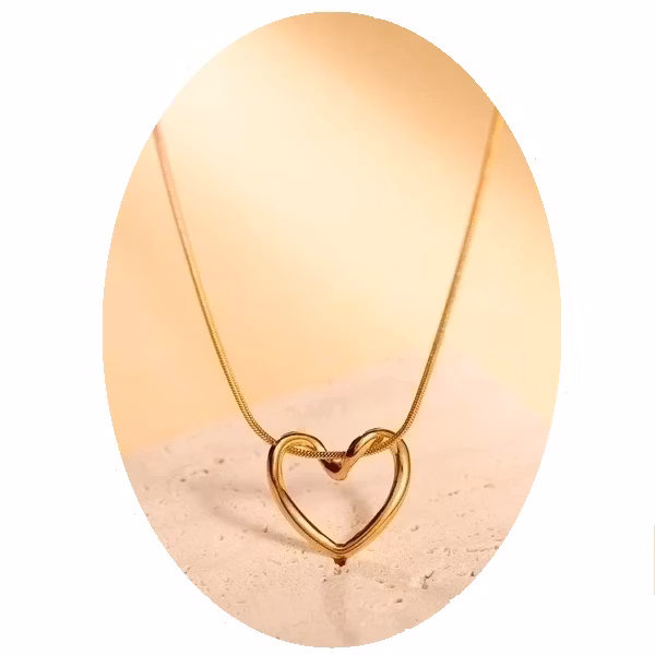 Ett romantiskt och stilrent halsband som fångar känslan av enkel elegans. Det öppna hjärtat ger smycket en luftig och modern form som gör det lika fint till vardags som till fest. Den varma guldfinishen och den tunna kedjan skapar ett smycke som känns både lätt och exklusivt – ett perfekt val för dig som älskar subtil romantik.