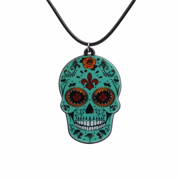 Färgstark, stolt och omöjlig att ignorera. Det här halsbandet är inspirerat av mexikanska sugar skulls och är lika mycket konst som accessoar. Hänget är lätt men tåligt, tryckt i klara färger med vackra detaljer – perfekt för dig som gillar att uttrycka dig genom smycken. En riktig humörhöjare med attityd.