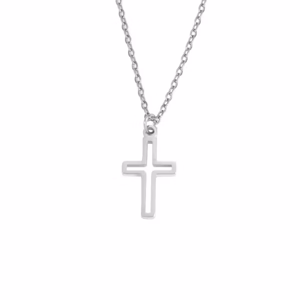 Ett stilrent halsband med ett korshänge i modern, minimalistisk design. Den blanka silverytan ger ett tidlöst uttryck och passar lika bra till vardags som till högtid. Halsbandet är tillverkat i rostfritt stål för en slitstark och allergivänlig finish.