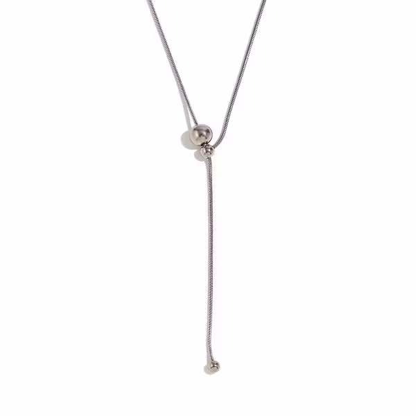 Ett elegant halsband med tidlös känsla och praktisk funktion. Kulspännet gör att du smidigt justerar längden – från kort choker till längre hänge. Tillverkat i rostfritt stål som håller glansen över tid.