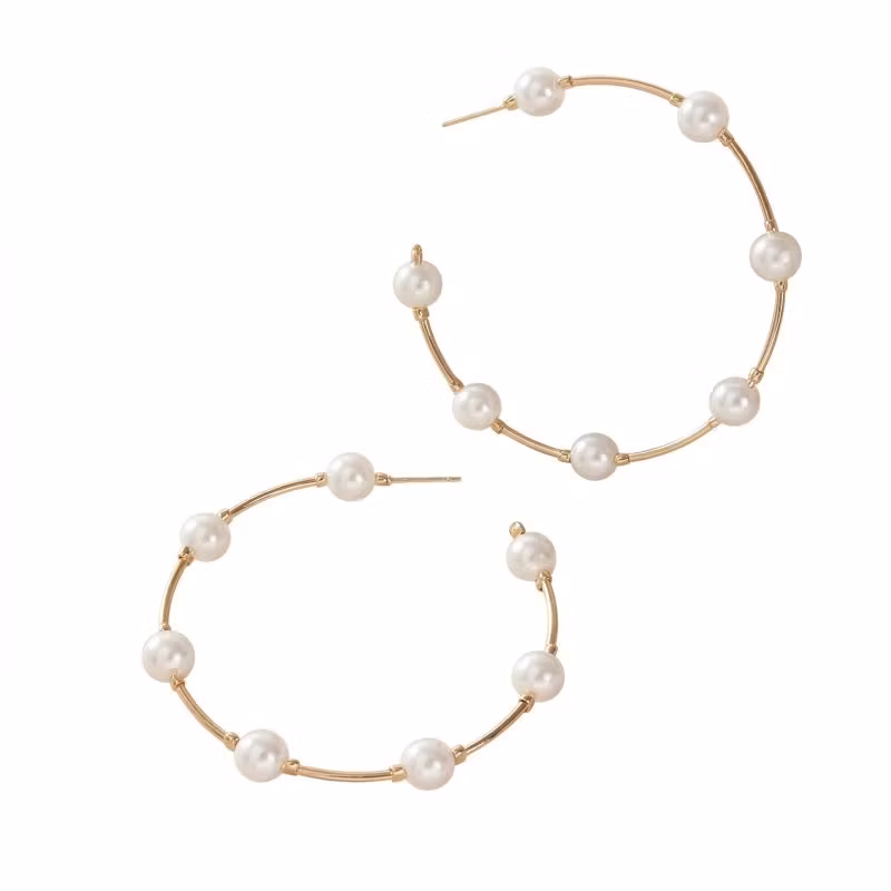 Ta din stil till nästa nivå med dessa magnifika och iögonfallande creoler. Med en imponerande diameter på 61 mm är dessa örhängen designade för att synas och ge en lyxig inramning till ansiktet. De klassiska runda pärlorna löper längs den tunna stålringen och skapar en vacker balans mellan modern metall och tidlös pärlelegans.