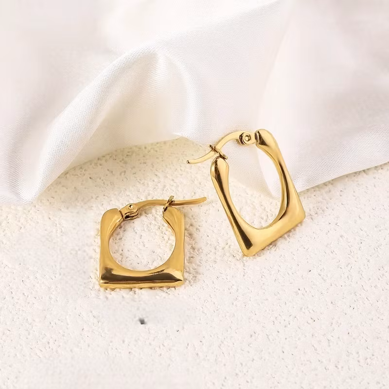 Dessa moderna geometriska creoler är perfekta när du vill addera något stilrent men ändå unikt till din look. Den mjukt kantiga formen ger ett elegant statement utan att bli för mycket, och den spegelblanka guldfinishen lyfter både vardagsoutfits och kvällsstil. Tillverkade i rostfritt stål för lång hållbarhet och en lätt känsla hela dagen.