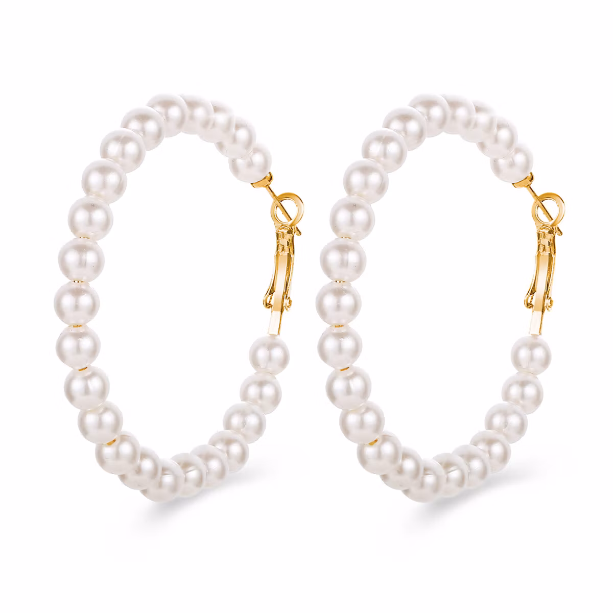 Dessa eleganta pärlcreoler kombinerar klassisk pärlglans med en modern och stilren form. De små vita pärlorna följer hela creolens rundning och skapar ett smycke som känns både sofistikerat och iögonfallande. Den generösa storleken gör att örhängena ramar in ansiktet på ett vackert sätt samtidigt som pärlorna ger en mjuk och feminin känsla. Ett smycke som lyfter både vardagsstilen och mer uppklädda tillfällen.