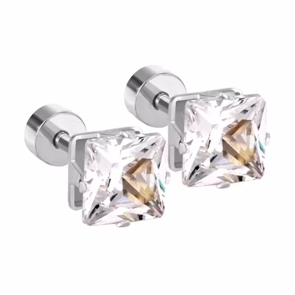 Rostfria örhängen med fyrkantig klar sten i 6 mm, ett stilrent och nickelfritt val för dig som söker tidlösa örhängen för daglig användning.
