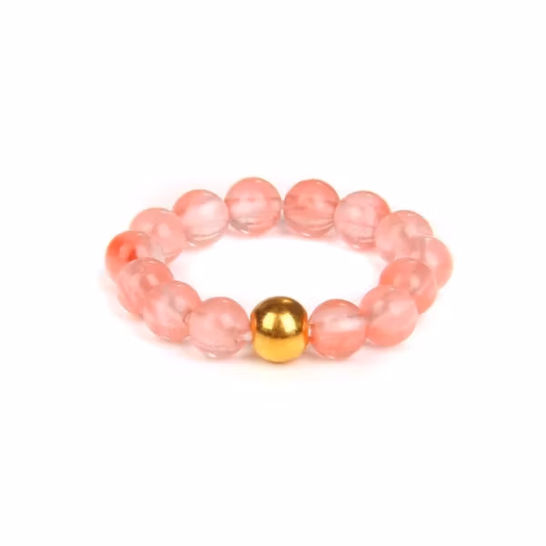 Söt som vattenmelon och lika oemotståndlig! Den här rosa ringen med transparent glans ger en frisk och feminin känsla, perfekt både till vardags och till fest. Den guldfärgade pärlan i mitten lyfter designen och fångar blicken direkt.