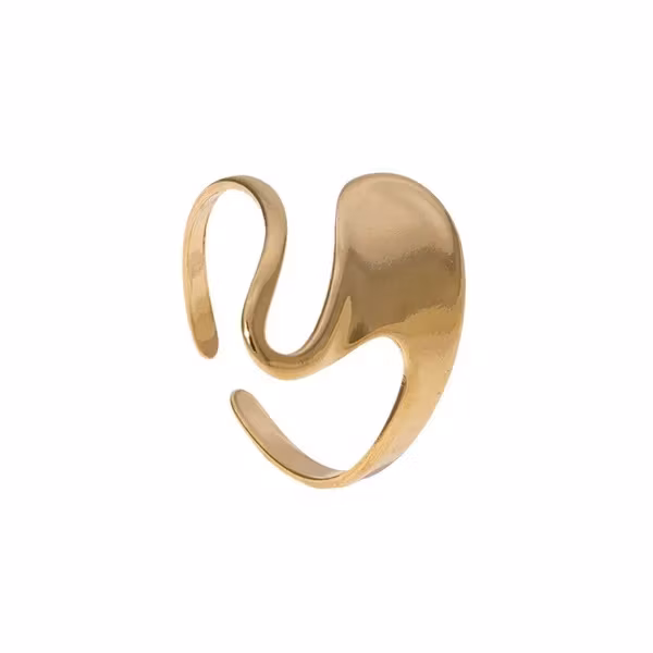 En konstnärlig ring med organiska linjer och skulptural känsla. Den glänsande ytan reflekterar ljuset mjukt medan den asymmetriska formen drar blickarna till sig. Perfekt för dig som vågar sticka ut med stil.