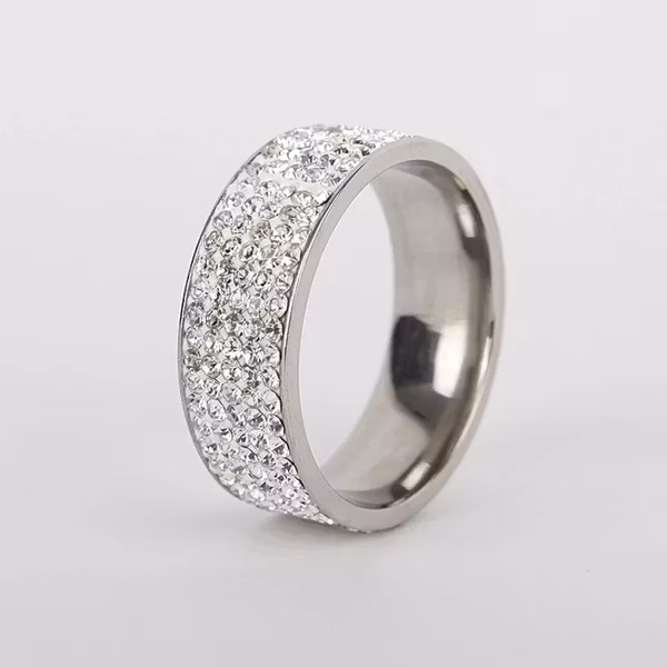 Det här är ringen som inte ber om ursäkt. Med sina tättsatta kristaller och kraftfulla form är den ett statement – både till fest och till vardags. Den breda modellen i rostfritt stål ger en tyngd och känsla som märks.