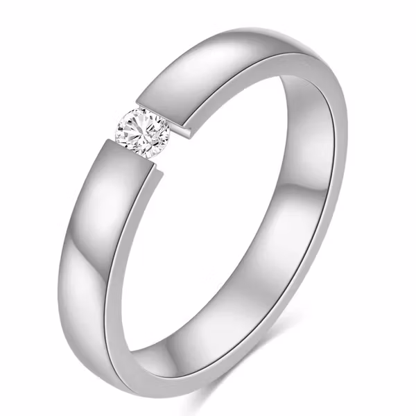 En minimalistisk dröm i rostfritt stål. Den här silverfärgade ringen är elegant i all sin enkelhet, med en infattad glittrande sten som fångar blicken utan att ta över. Perfekt för dig som gillar rena linjer och diskret lyx – både till vardags och fest.