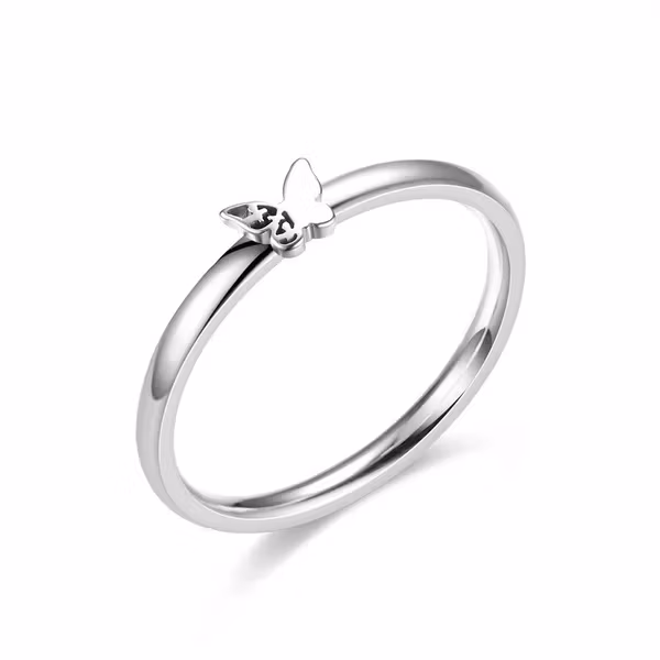 En söt liten påminnelse om frihet, skönhet och lätthet. Den här tunna ringen i rostfritt stål pryds av en fin liten fjäril, diskret och stilren – men ändå full av charm. Perfekt för vardag, och lika fin att bära som soloring som i kombination med andra ringar.