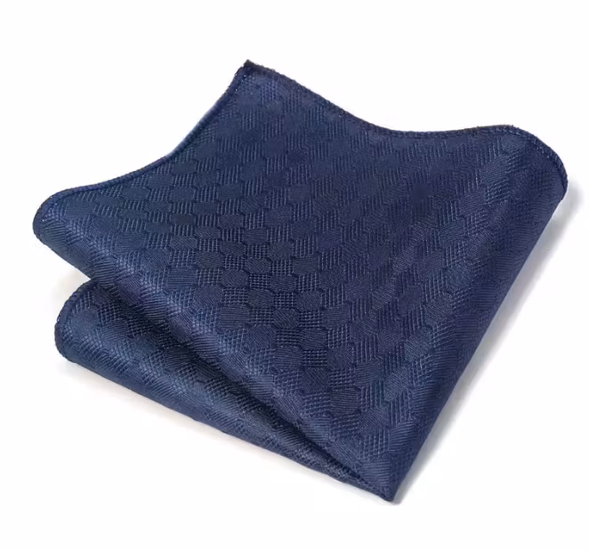 Näsduk i polyester med mjuk och slät yta samt subtilt geometriskt mönster i marinblå ton.