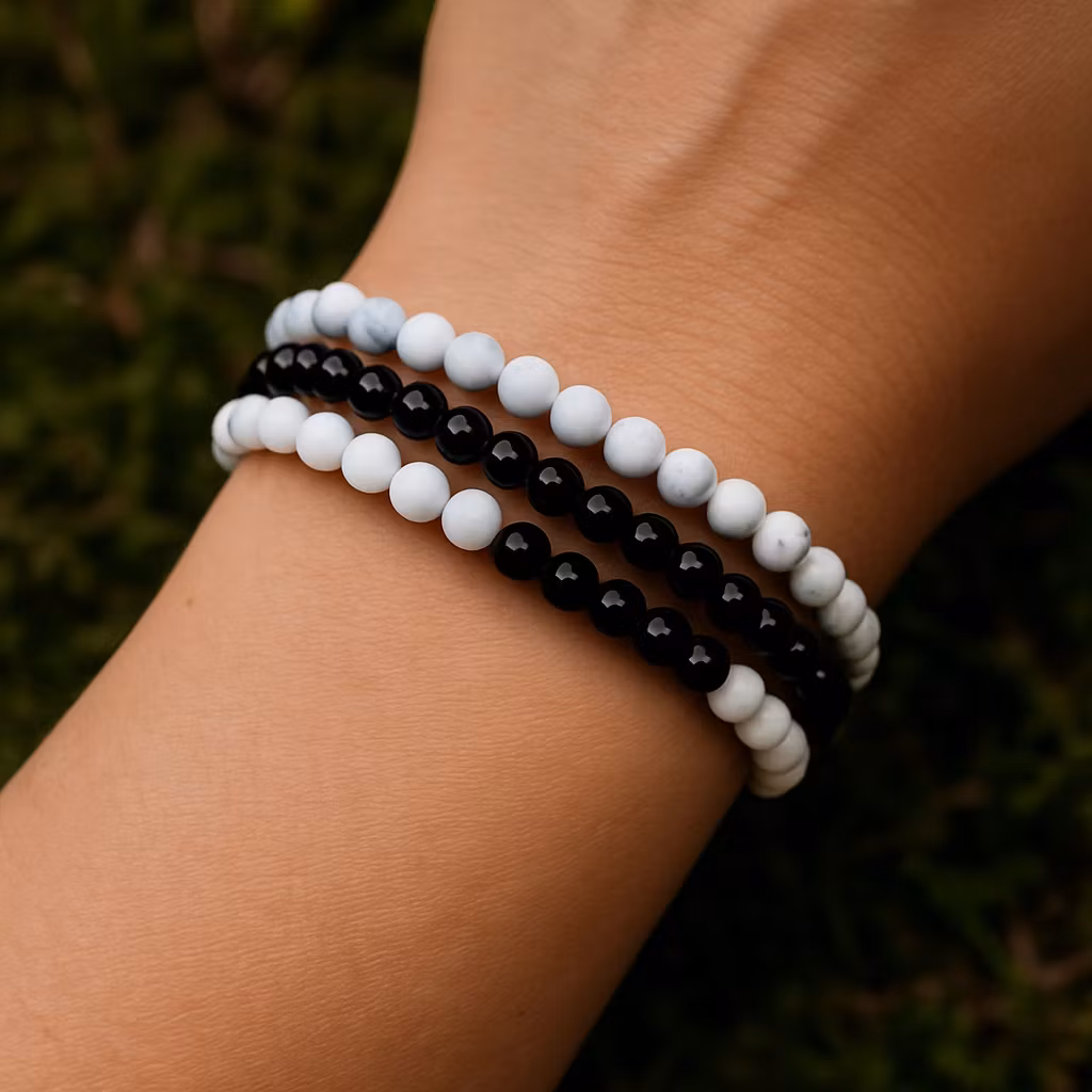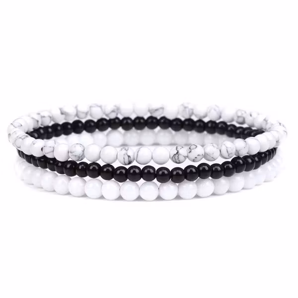 En stilren mix av tre armband som passar lika bra tillsammans som var för sig. De små stenpärlorna ger ett elegant och diskret intryck, samtidigt som färgerna skapar kontrast. Perfekt till vardags eller som lugn detalj i en större armbandskombination.