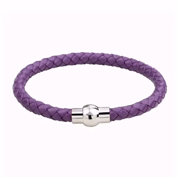 Färgstarkt, stilrent och bekvämt – detta lila armband är perfekt för dig som vill sätta en personlig prägel på din outfit. Den flätade designen ger struktur, medan magnetlåset i rostfritt stål ger både elegans och säkerhet.