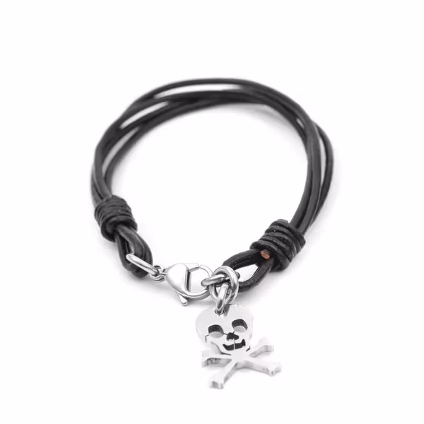 Tunt men tufft – det här armbandet med fyra svarta remmar i PU-läder bärs lika gärna solo som i kombination med andra. Dödskallen i rostfritt stål ger ett rebelliskt uttryck utan att bli för mycket.