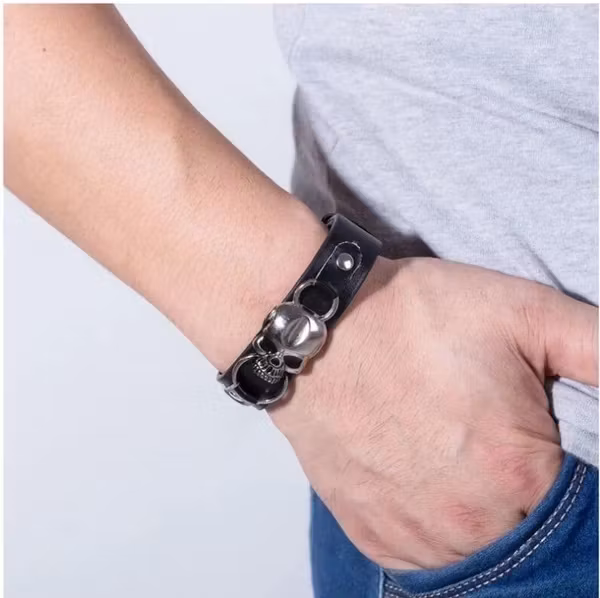 Tuffare än så här blir det inte. Detta armband med silverfärgad dödskalle och grova metalldetaljer ger en tydlig attityd. Det breda PU-lädret i svart och det justerbara spännet gör det både bekvämt och stilfullt – perfekt för dig som vill sticka ut med ett statement.