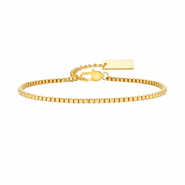 Ett elegant armband för dig som älskar det minimalistiska. Den smala kedjan i guldton ger en sofistikerad känsla och funkar lika bra ensam som i kombination med andra smycken. Ett diskret statement som passar till alla tillfällen.