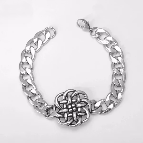 Ett robust herrarmband där klassisk länkdesign möter ett kraftfullt, flätat smycke i silverfärg. Den intrikata knuten i mitten drar genast blickarna till sig – ett motiv som signalerar styrka, sammanhållning och tidlöshet. Perfekt för dig som vill bära något annorlunda men ändå stilrent.