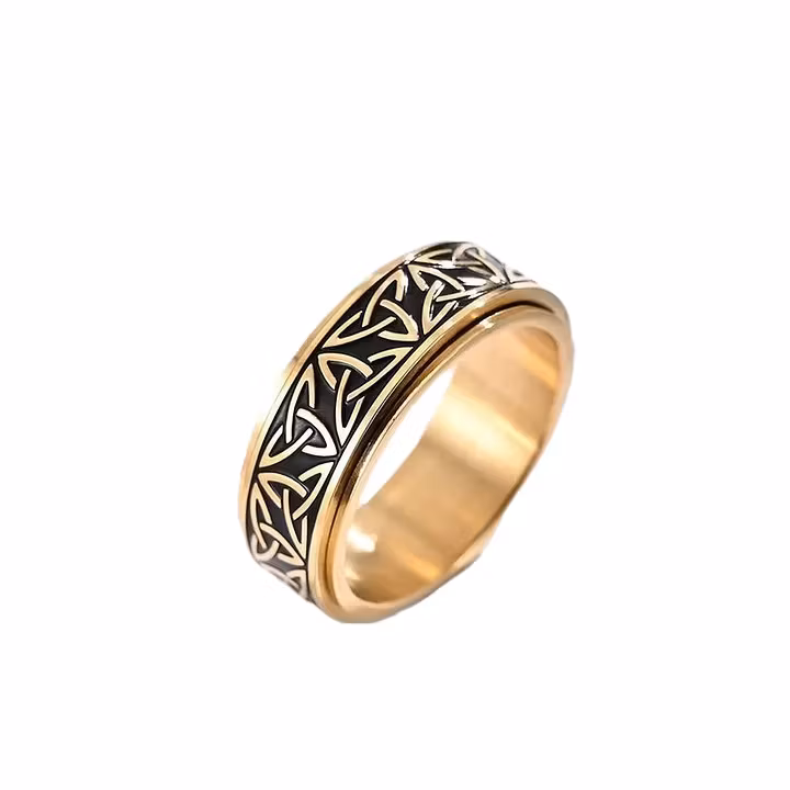 - Gyllene finish med keltiskt mönster runt hela ringen
