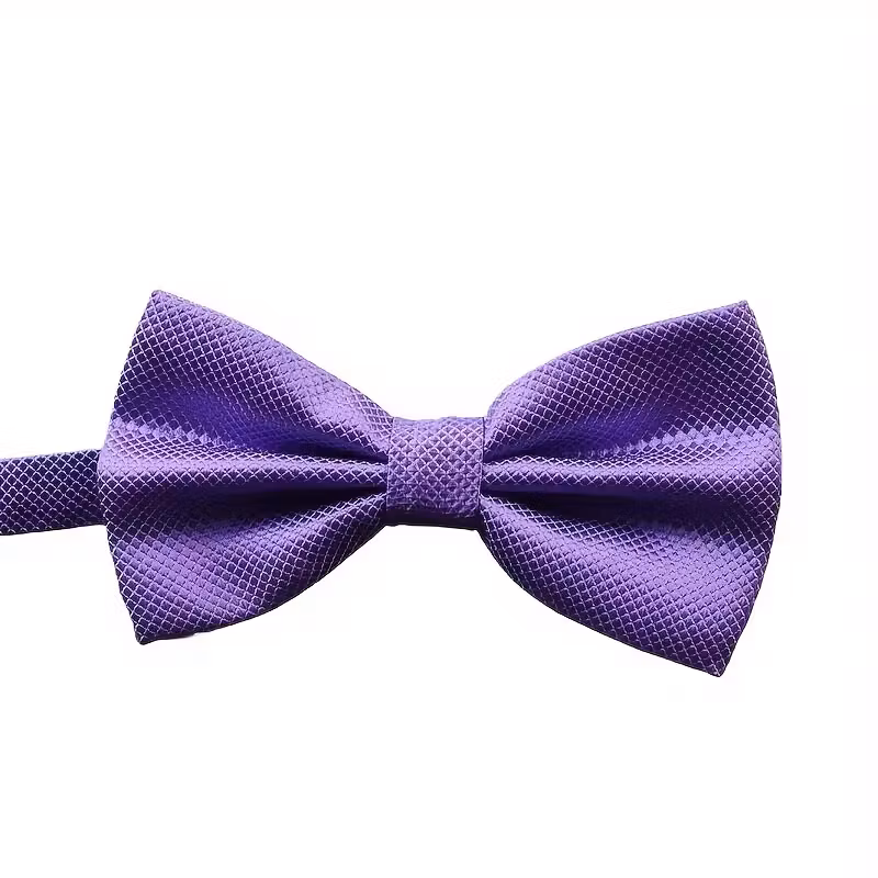 Lila färdigknuten fluga för herr med strukturerat tyg i storlek ca 12 × 6,5 cm.